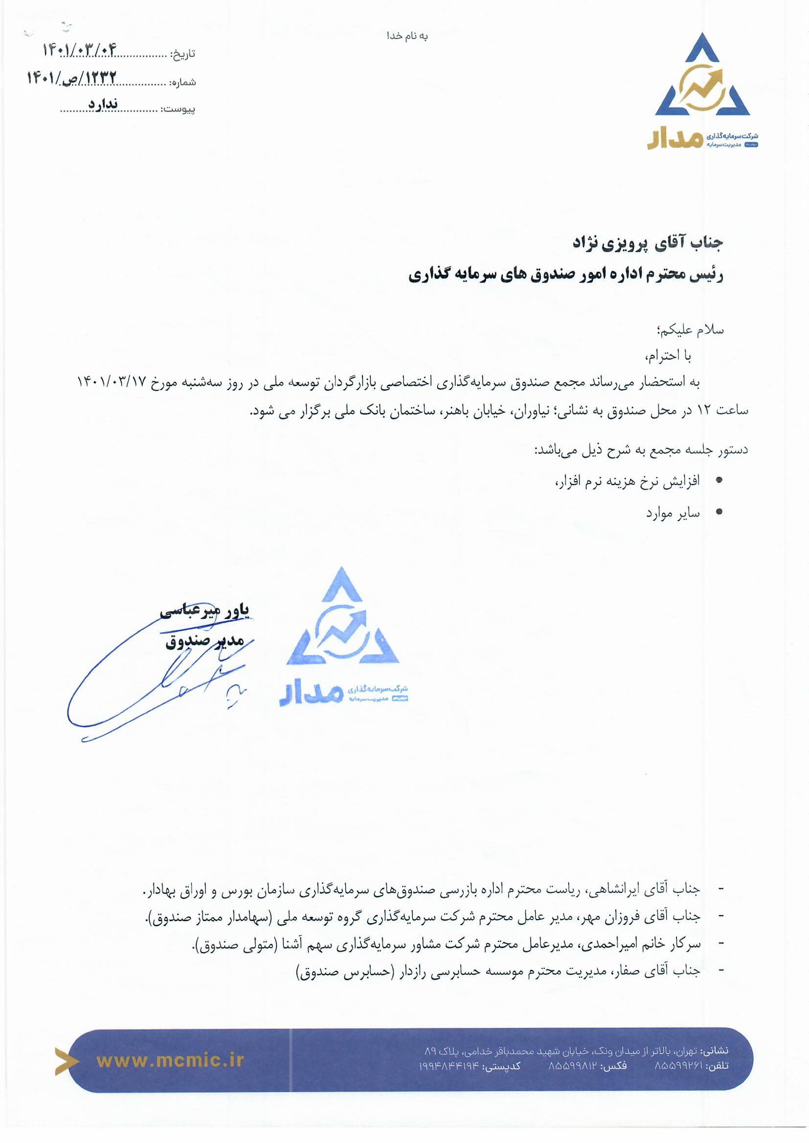 آگهی دعوت به مجمع به تاریخ 17 خرداد 1401 (افزایش تعداد واحدهای سرمایهگذاری)