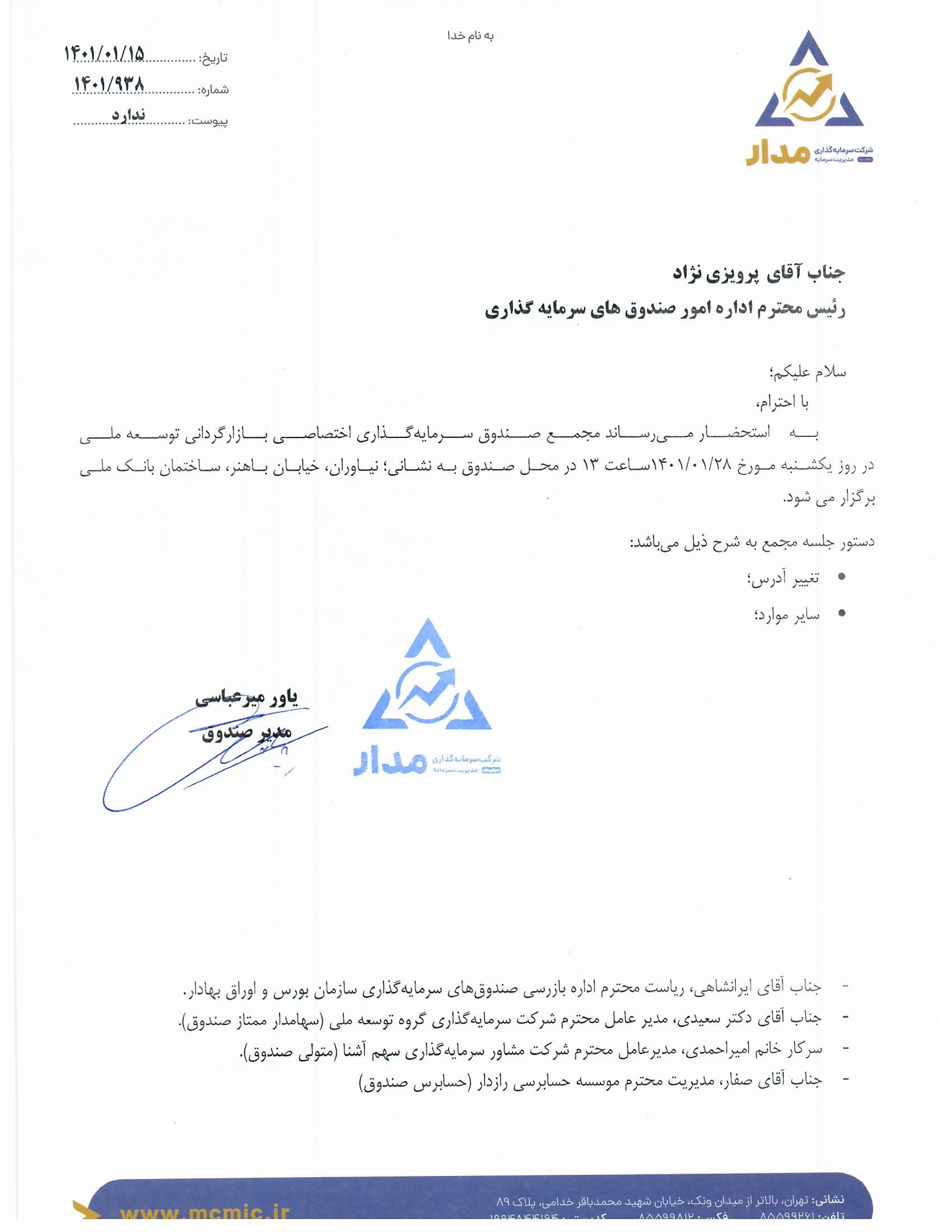 صورتجلسه مجمع به تاریخ 1401.01.28 (تغییر آدرس)