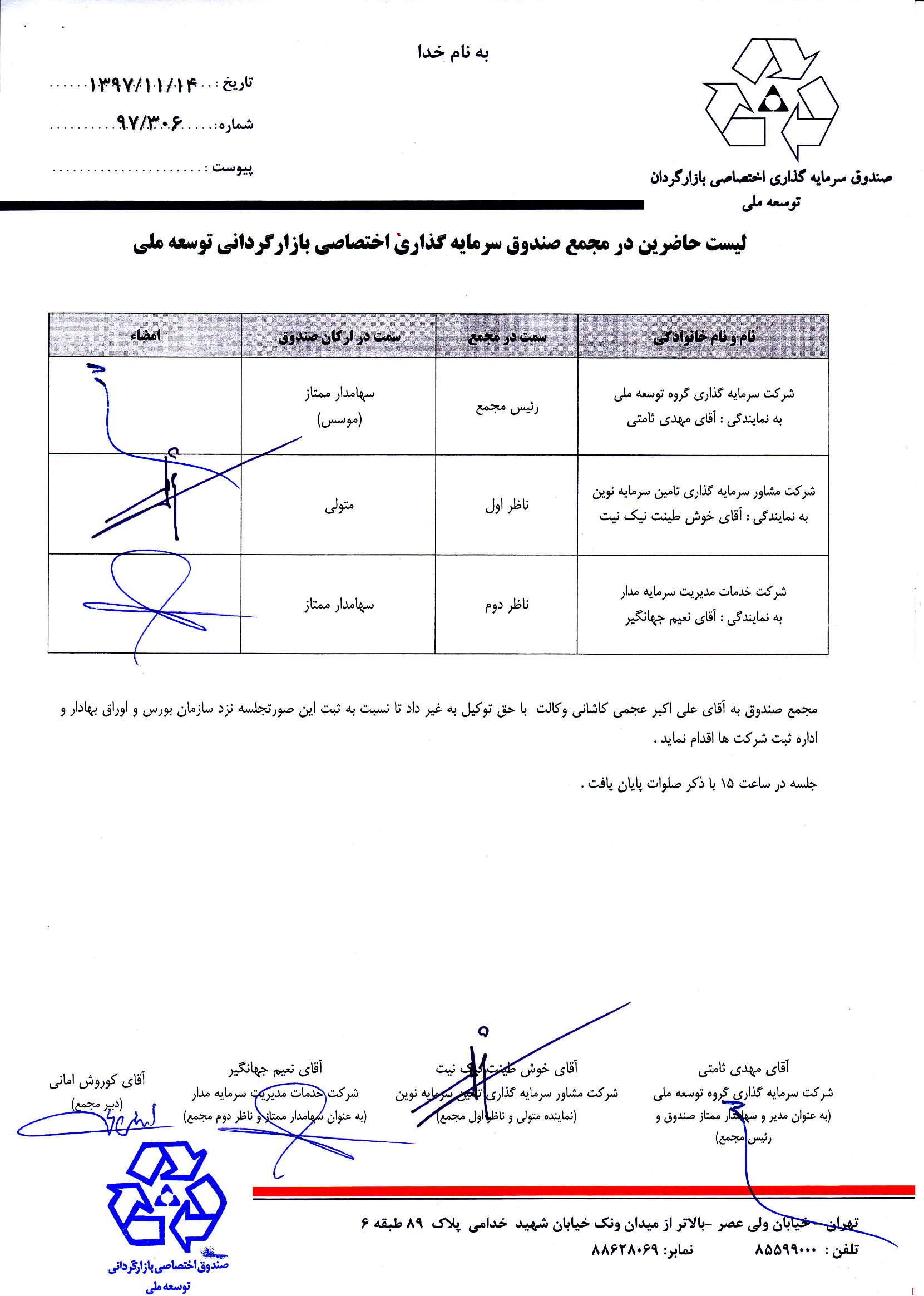 لیست حاضرین در مجمع مورخ 1397/11/14