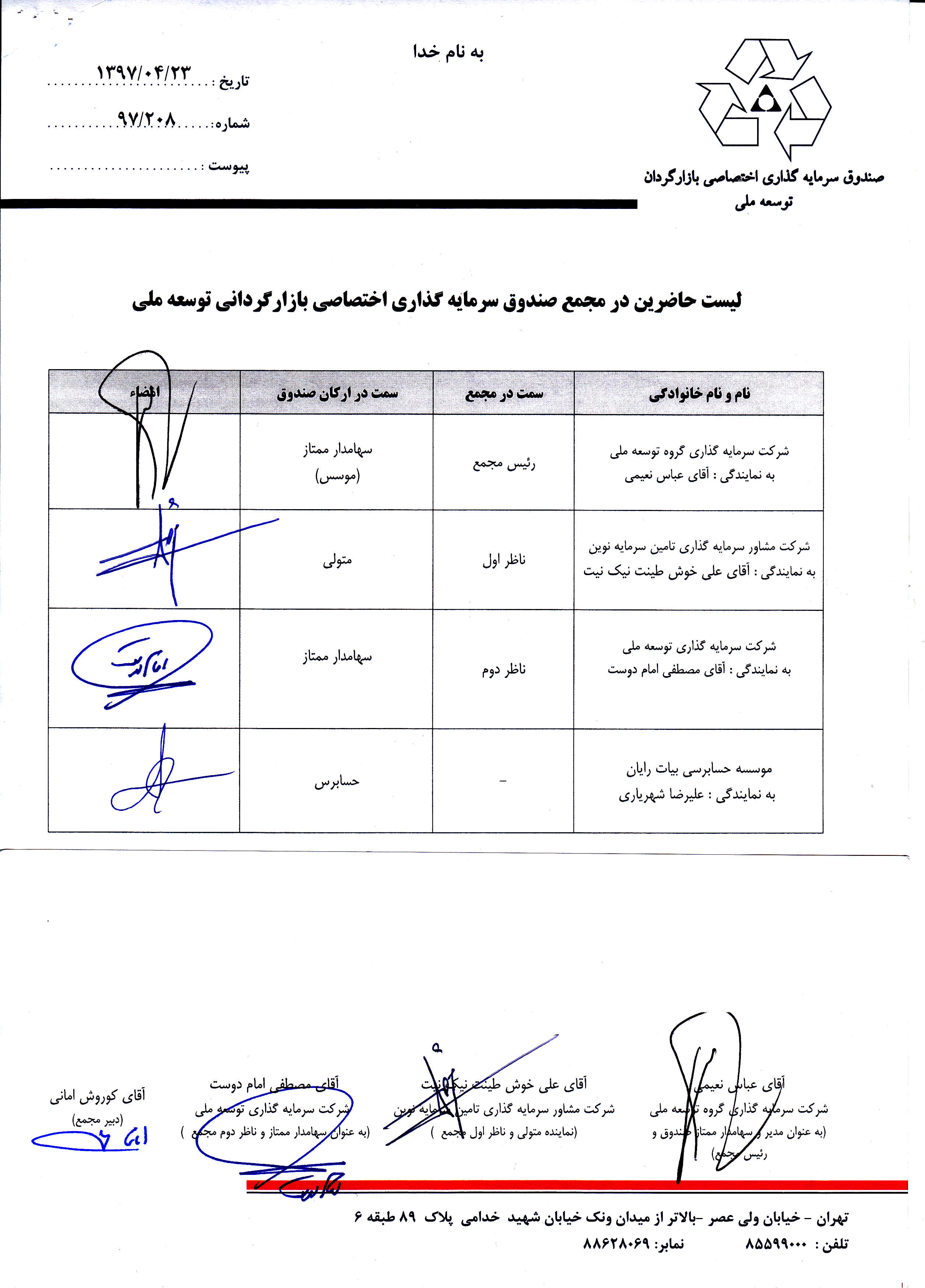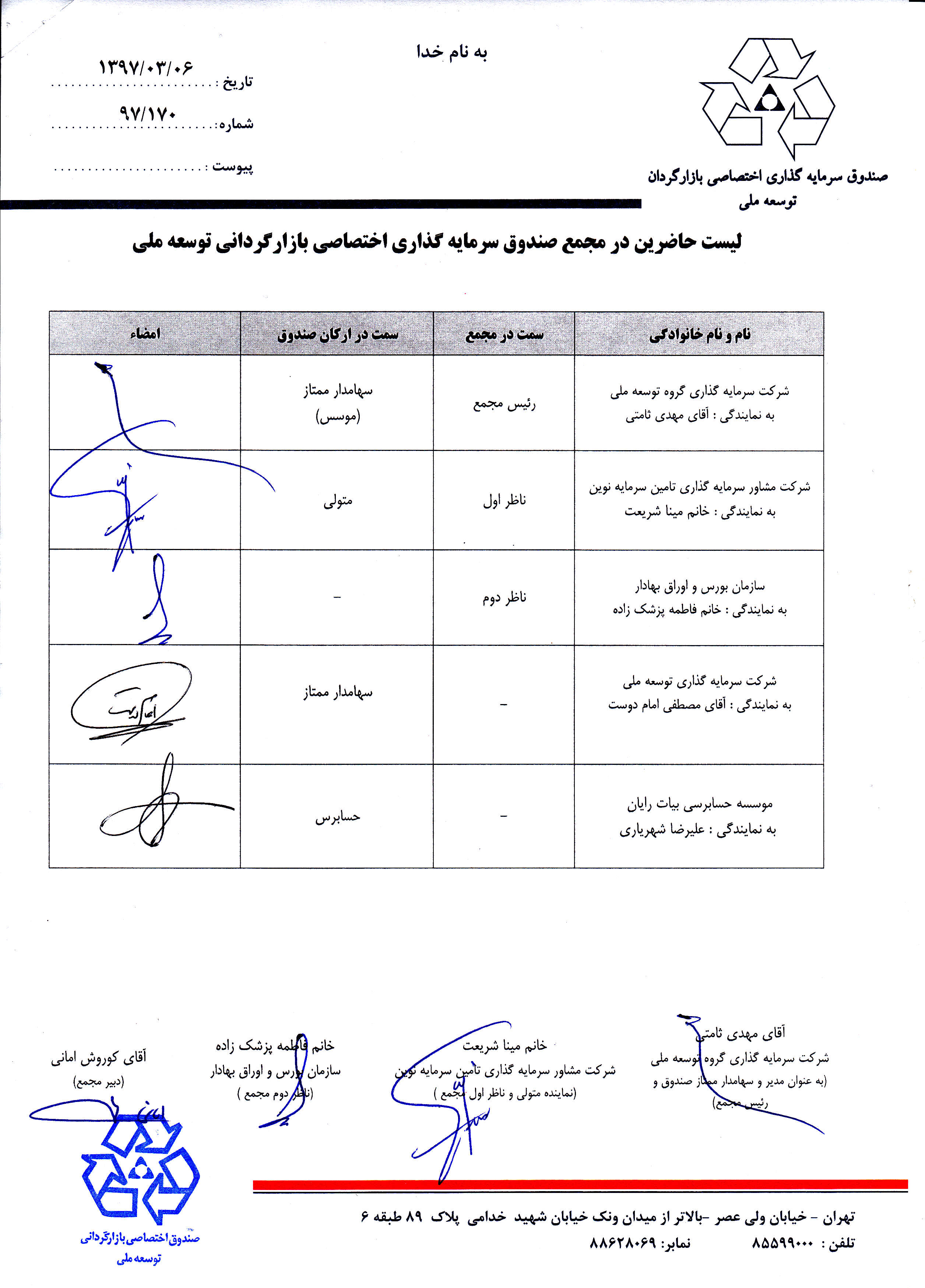 لیست حاضرین در مجمع مورخ ۱۳۹۷/۰۳/۰۶