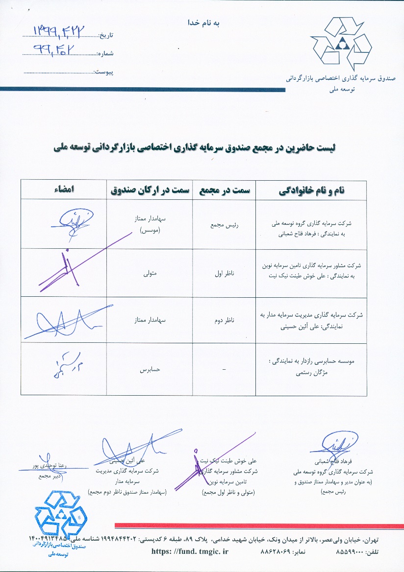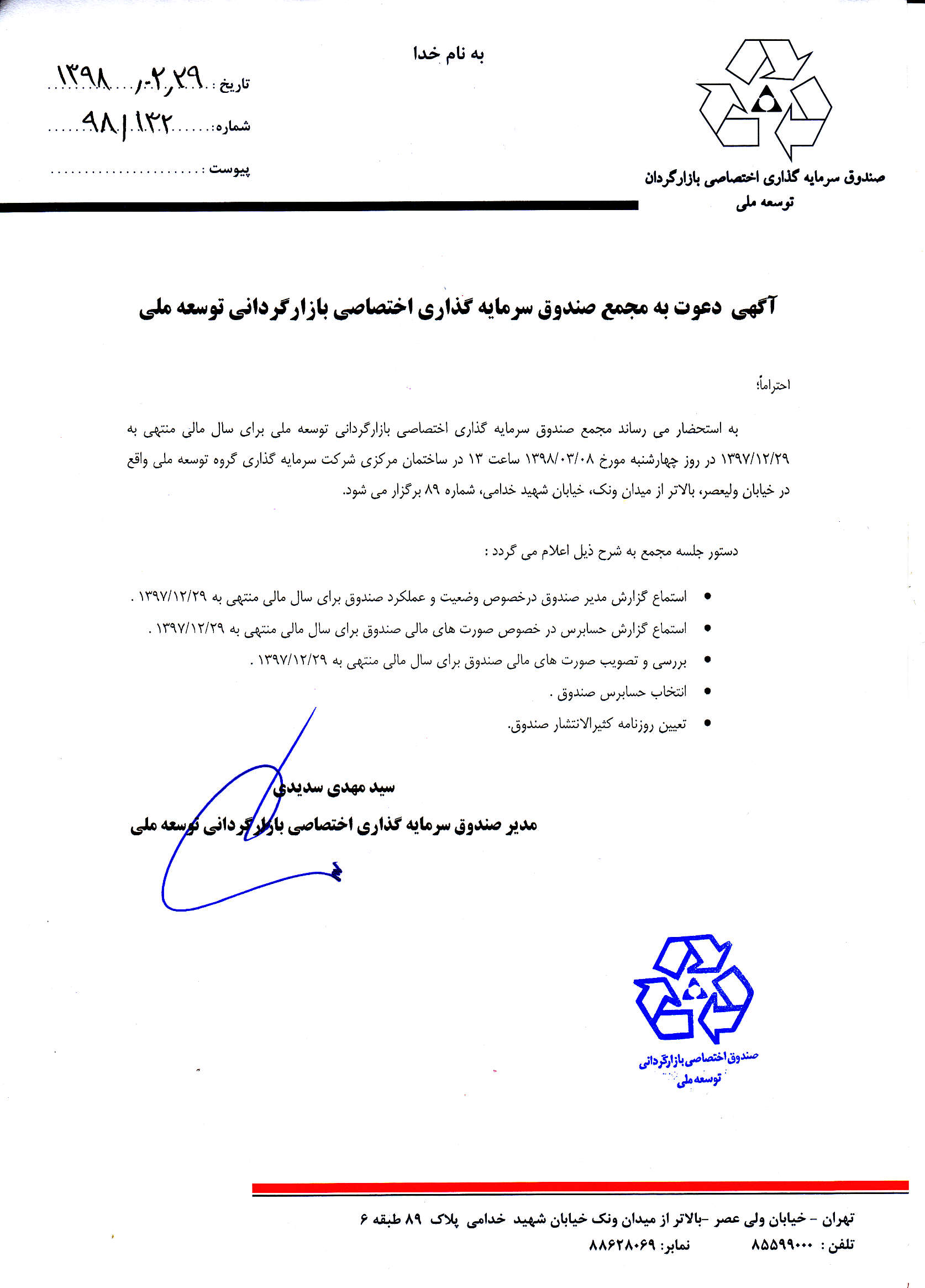 آگهی دعوت به مجمع صندوق سرمایه گذاری اختصاصی بازارگردانی توسعه ملی به تاریخ ۱۳۹۸/۰۳/۱۸