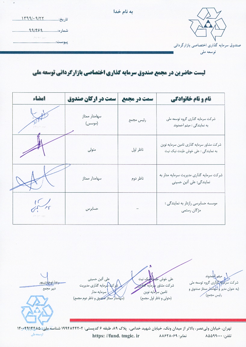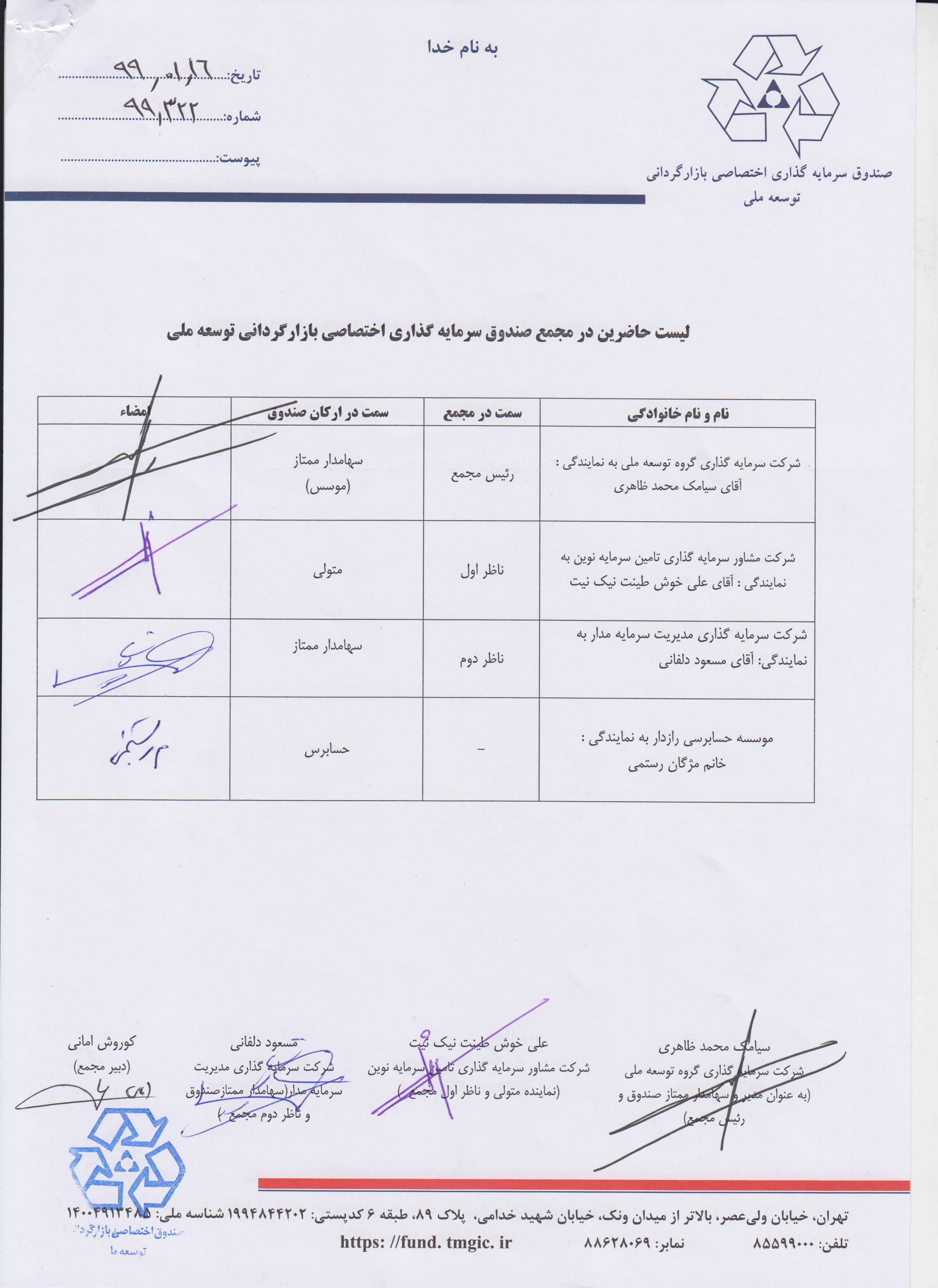لیست حاضرین در مجمع مورخ ۱۳۹۹/۰۱/۱۶