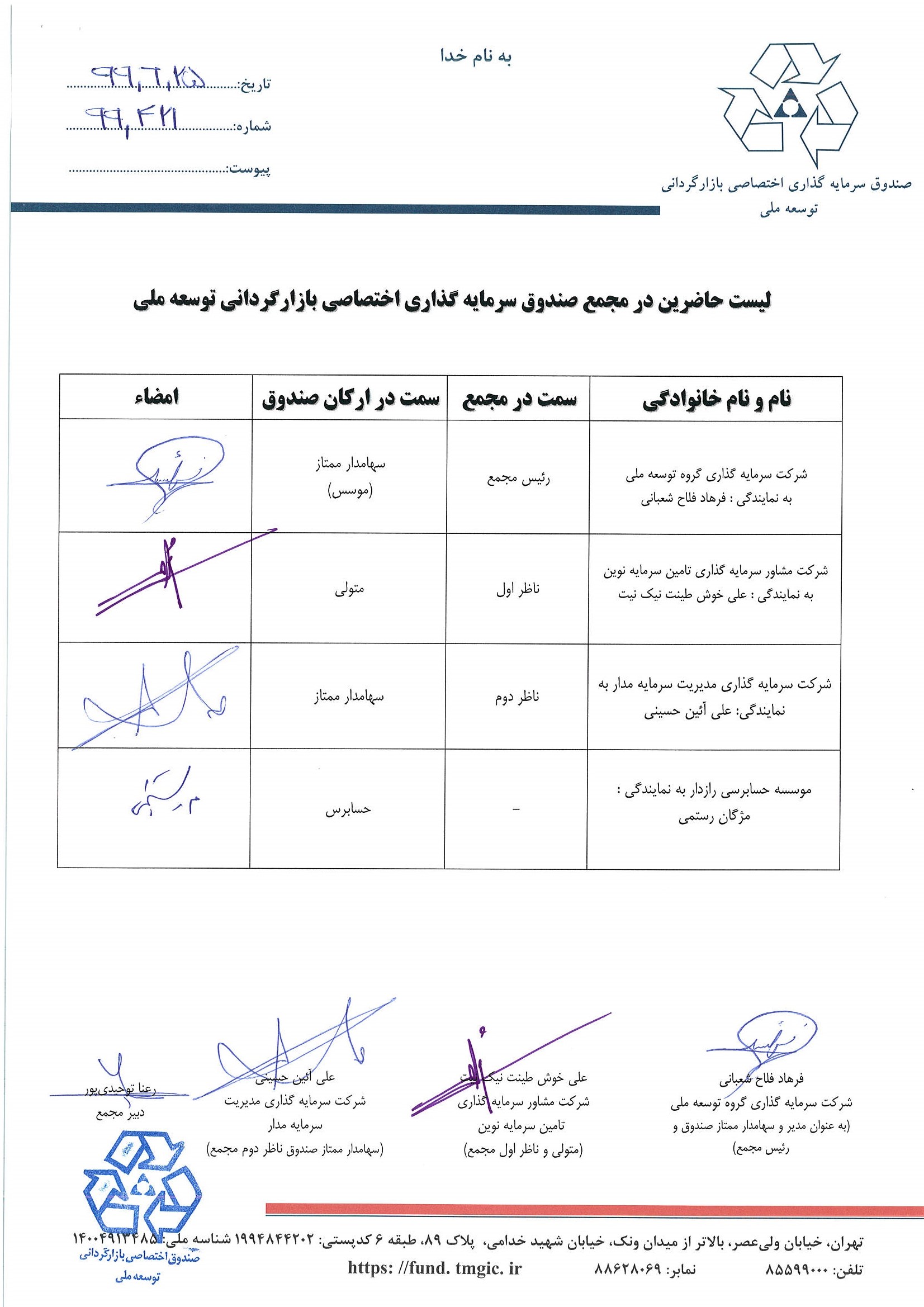 صورتجلسه مجمع مورخ ۰۱ دی ماه ۱۴۰۴ ساعت ۱۰:۰۰ ( تغییر تعهدات واحدهای سرمایه گذاری)
