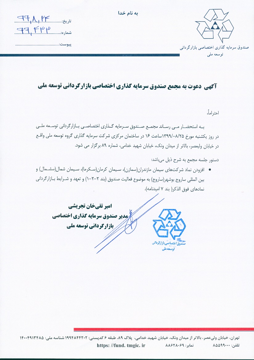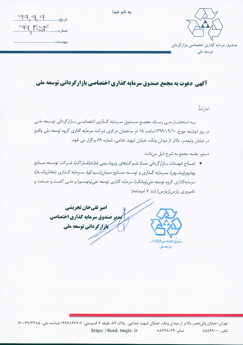 آگهی دعوت به مجمع صندوق سرمایه گذاری اختصاصی بازارگردانی توسعه ملی به تاریخ ۱۳۹۹/۰۱/۱۶