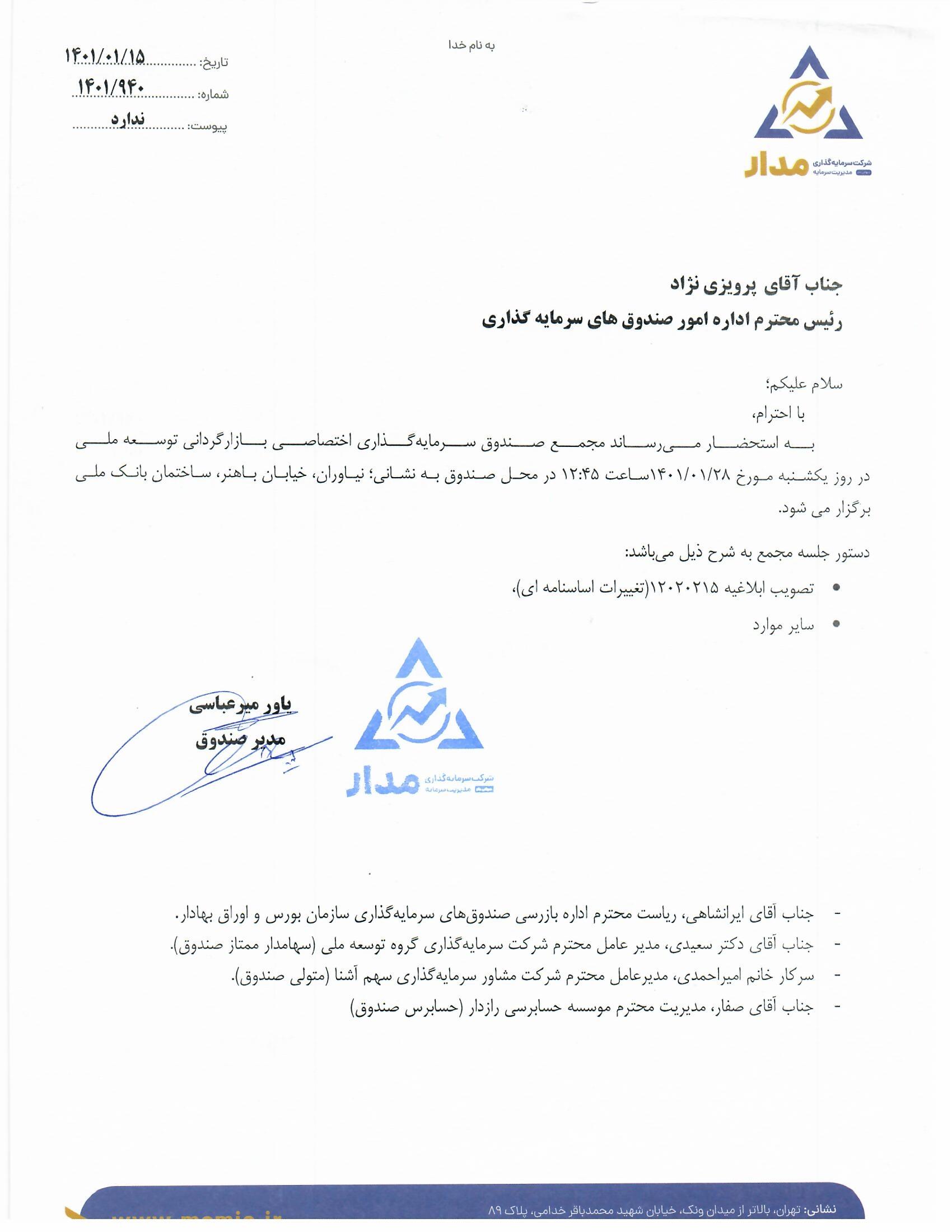 آگهی دعوت به مجمع مورخ ۲۶ مهر ماه ۱۴۰۴ (تغییر تعهدات واحدهای سرمایه گذاری)